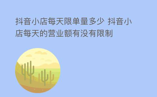 一、抖音小店每日限單量多少?