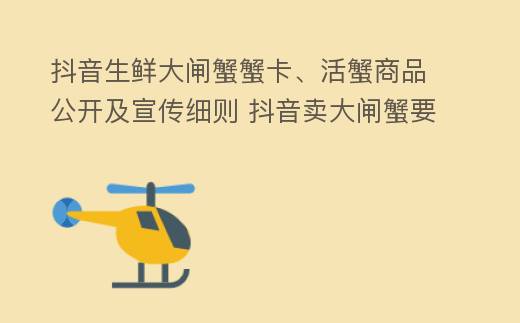 為了保護抖音消費者權(quán)益,規(guī)范商家經(jīng)營行為,抖音新增了《【生鮮】大閘蟹蟹卡、活蟹商品發(fā)布及宣傳細(xì)則》。核心變化:新增大閘蟹蟹卡、活蟹商品發(fā)布及宣傳要求,詳細(xì)規(guī)則內(nèi)容如下: