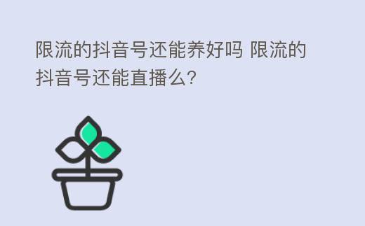 一、限流的抖音號還能養(yǎng)好嗎?