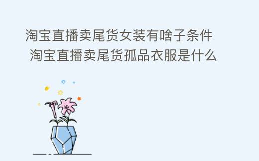 摘要:必須要有一個綁定支付寶實名認證的淘寶賬號,根據(jù)淘寶賬號屬性的不同,具體要求也不同,分為三種:普通會員/淘寶達人(非商家身份)、淘寶達人、淘寶商家。淘寶上的店鋪類型是比較多的,很多賣家會選擇服裝類目上架產(chǎn)品運營,但是想要有個更好的發(fā)展的話,會利用直播的方式去推廣產(chǎn)品,那么直播賣尾貨女裝的話會,淘寶直播賣尾貨女裝有啥子條件 淘寶直播賣尾貨孤品衣服是什么人